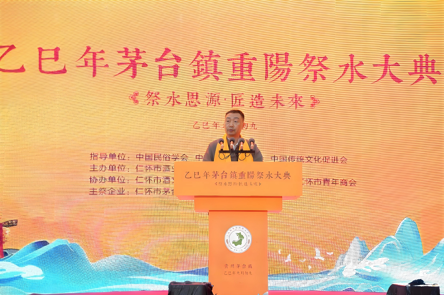 仁怀市人大常委会副主任、仁怀市酒业协会常务副会长焦林致欢迎辞,他向莅临现场的各位领导、嘉宾表示热烈欢迎,并深情阐述了祭水活动对于感恩自然、坚守传统、承诺未来的重要意义。
