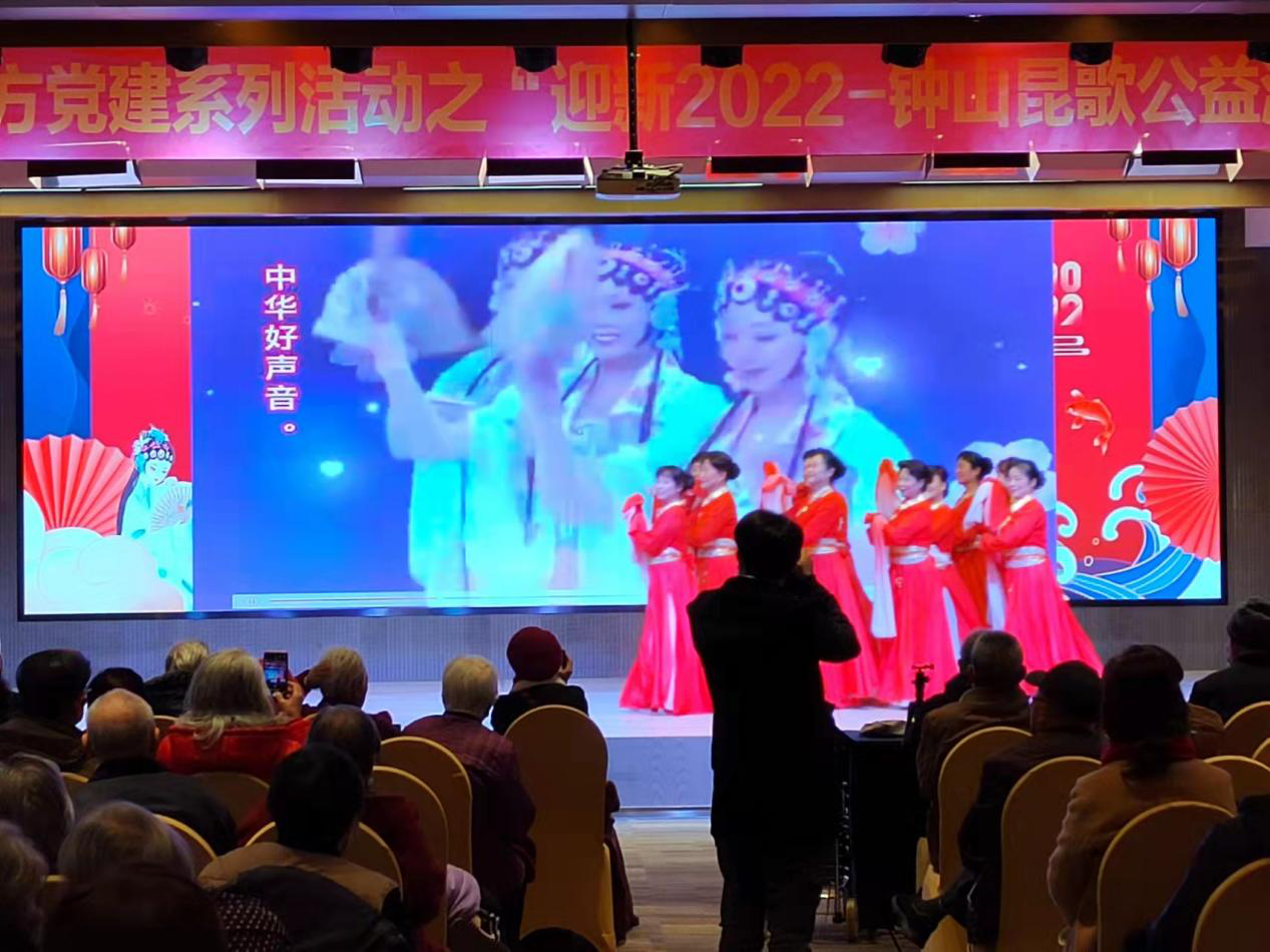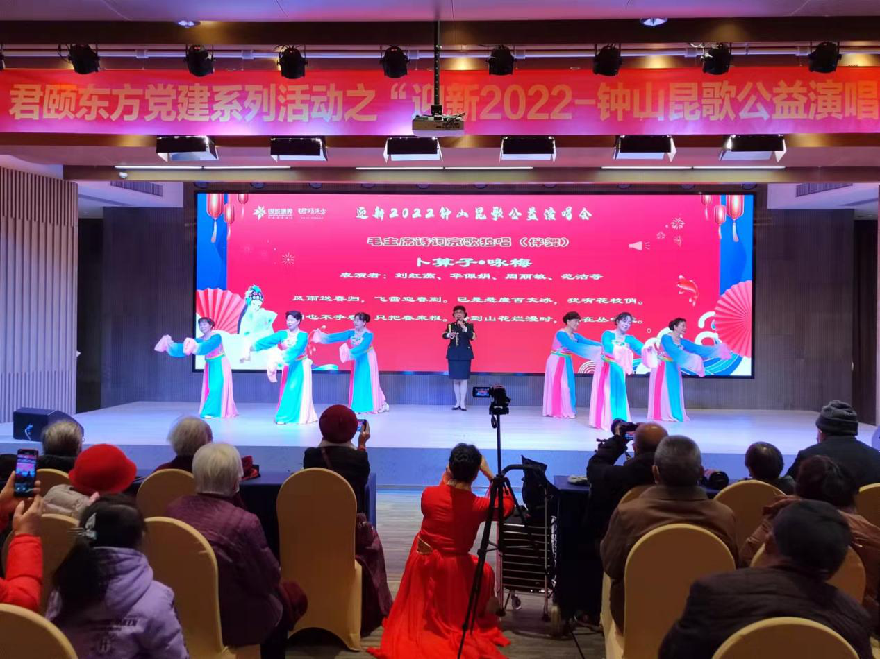 华夏文化网中国南京讯(照片/徐亮、葛成忠、滕淦生 文/ 滕淦生) 2022年元旦,南京钟山昆歌艺术团走进位于南京市马群南路19号的银城君颐东方国际康养社区,把一台昆歌公益演唱会节目送给居住在这里的老人。