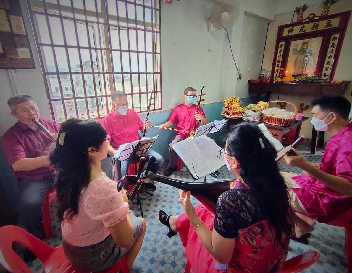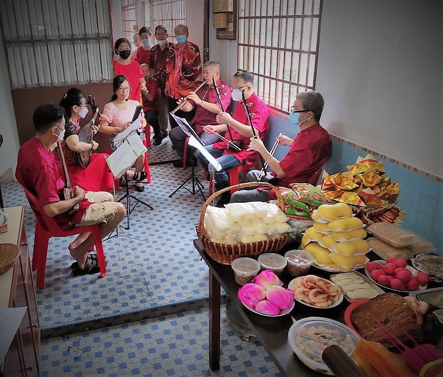 華夏文化網馬來西亞訊(許隆基/文 圖) 農曆壬寅年二0二二年二月十二日中午十二點正,馬來西亞太平仁愛音樂社音樂戲劇組捧金杯、斟壽酒、今朝壽山共福海、絲弦齊鳴、清曲吟唱《願得身安歌昇平》,舉行春祭暨南音祖師孟府郎君千秋聖誕。