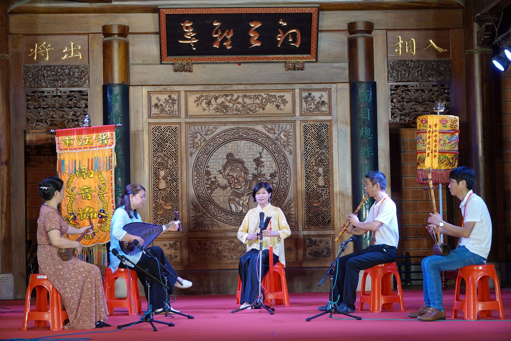 来自泉州市各县(市、区)的15支南音代表队同台献唱。大会唱既有传统南音曲目,也有新编南音曲目。泉州南音乐团带来了刚刚入选中国曲艺牡丹奖大赛决赛的原创作品《潮涌晋江》。弦友们轮番上阵,切磋交流。观众趁着仲夏懒风,细细品尝三小时之久的古乐精神盛宴。