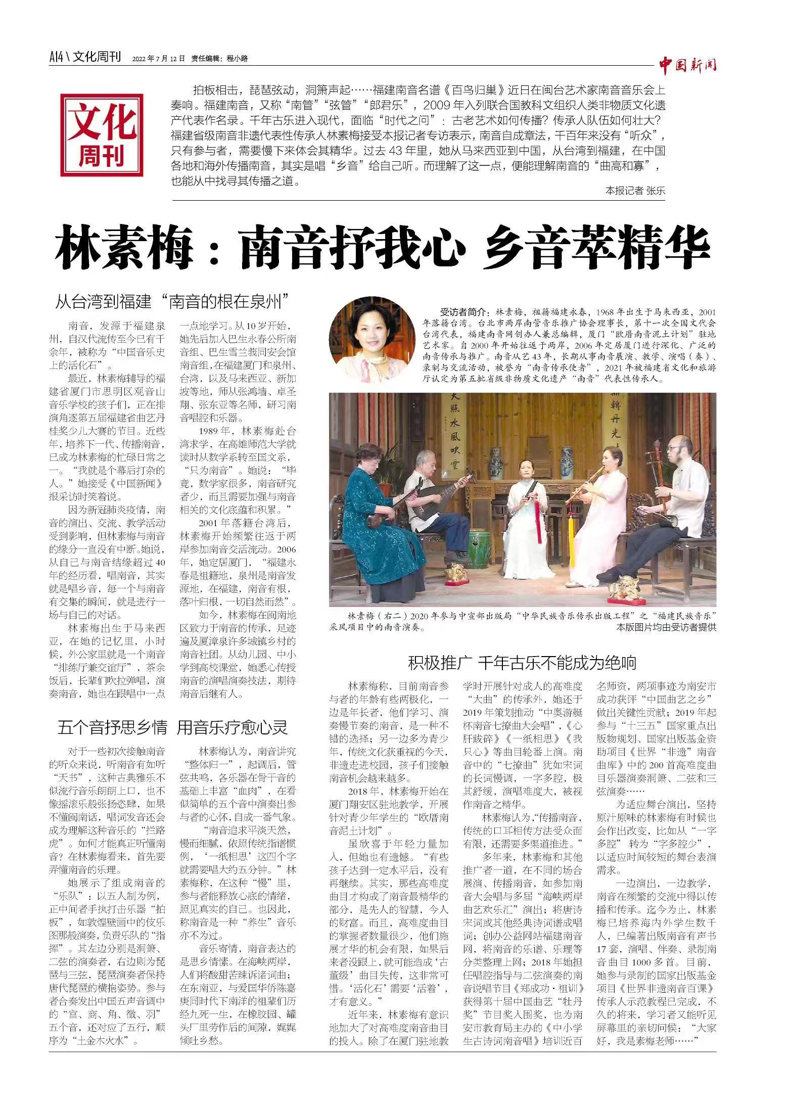 最近,林素梅辅导的福建省厦门市思明区观音山音乐学校的孩子们,正在排演角逐第五届福建省曲艺丹桂奖少儿大赛的节目。近些年,培养下一代、传播南音,已成为林素梅的忙碌日常之一。“我就是个幕后打杂的人。”她接受《中国新闻》报采访时笑着说。
