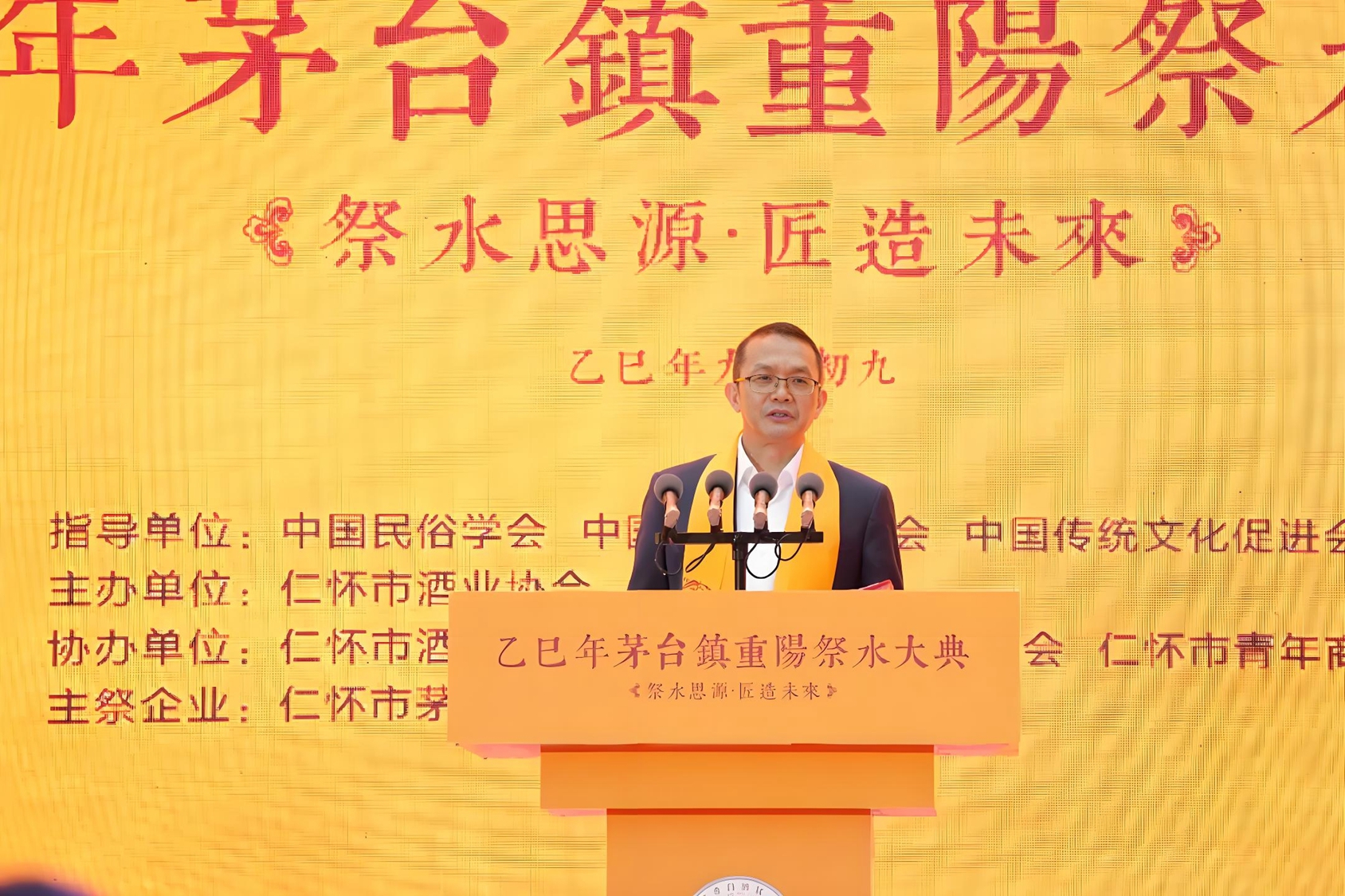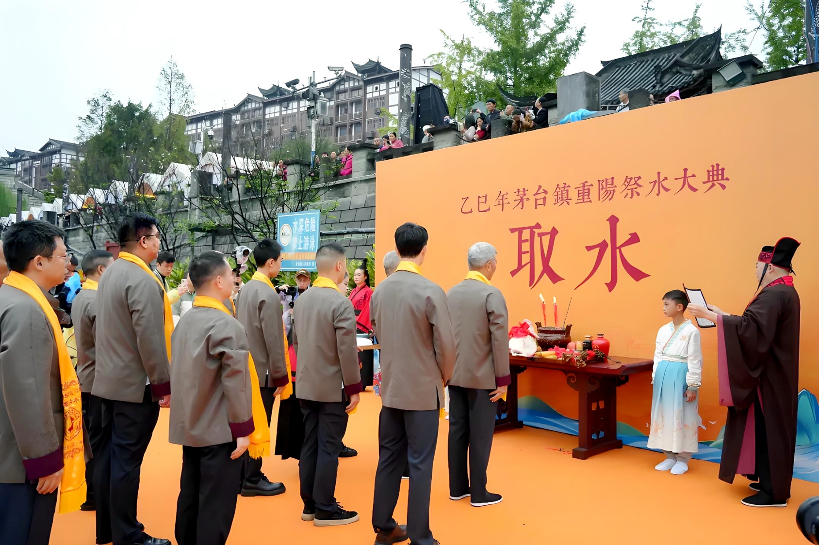 中国华夏文化网 贵州仁怀讯: 九九重阳,天朗气清;赤河欢歌,酒香满城。2025年10月29日(农历乙巳年九月初九),以“祭水思源·匠造未来”为主题的仁怀市2025(乙巳)年茅台镇重阳祭水大典在中国酱香白酒核心产区——仁怀市茅台镇一九一五广场隆重举行。