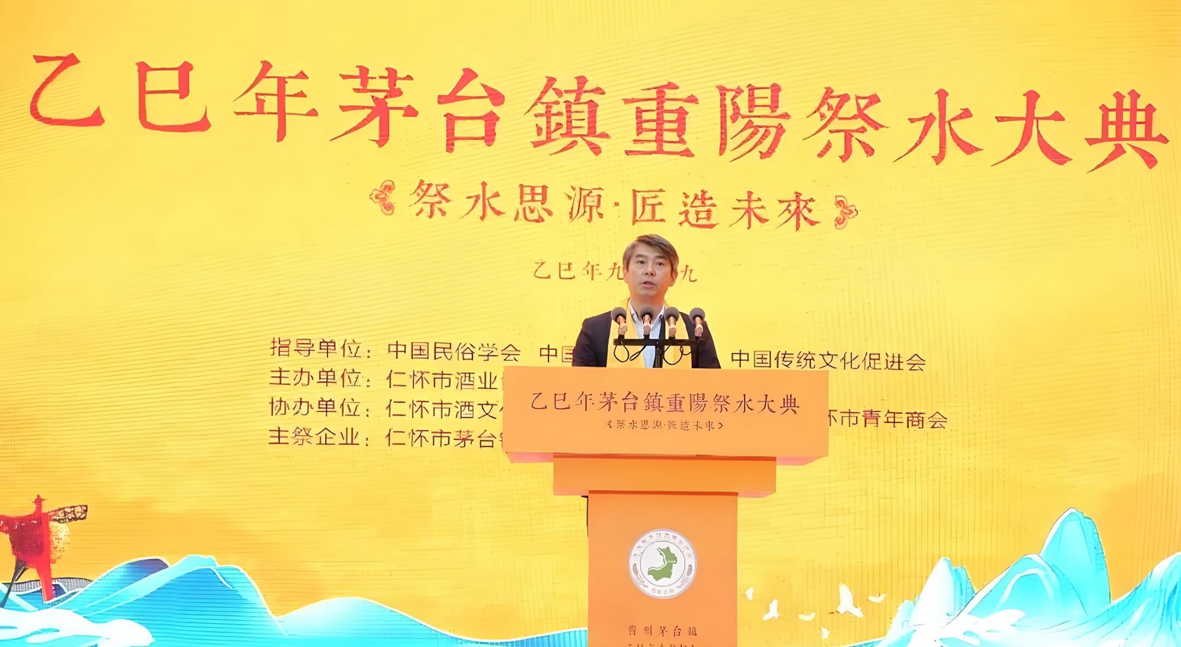 仁怀市人大常委会副主任、仁怀市酒业协会常务副会长焦林致欢迎辞,他向莅临现场的各位领导、嘉宾表示热烈欢迎,并深情阐述了祭水活动对于感恩自然、坚守传统、承诺未来的重要意义。