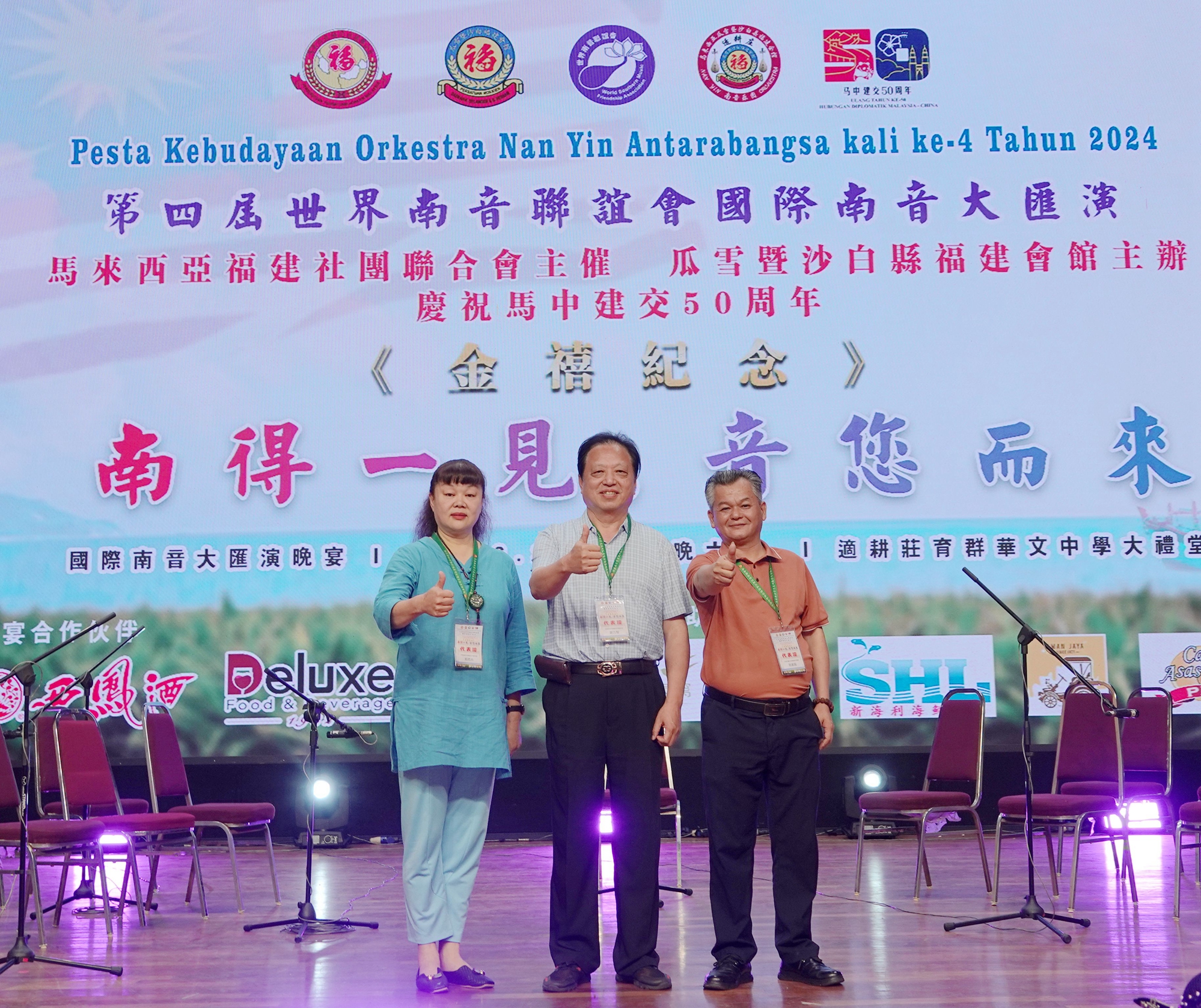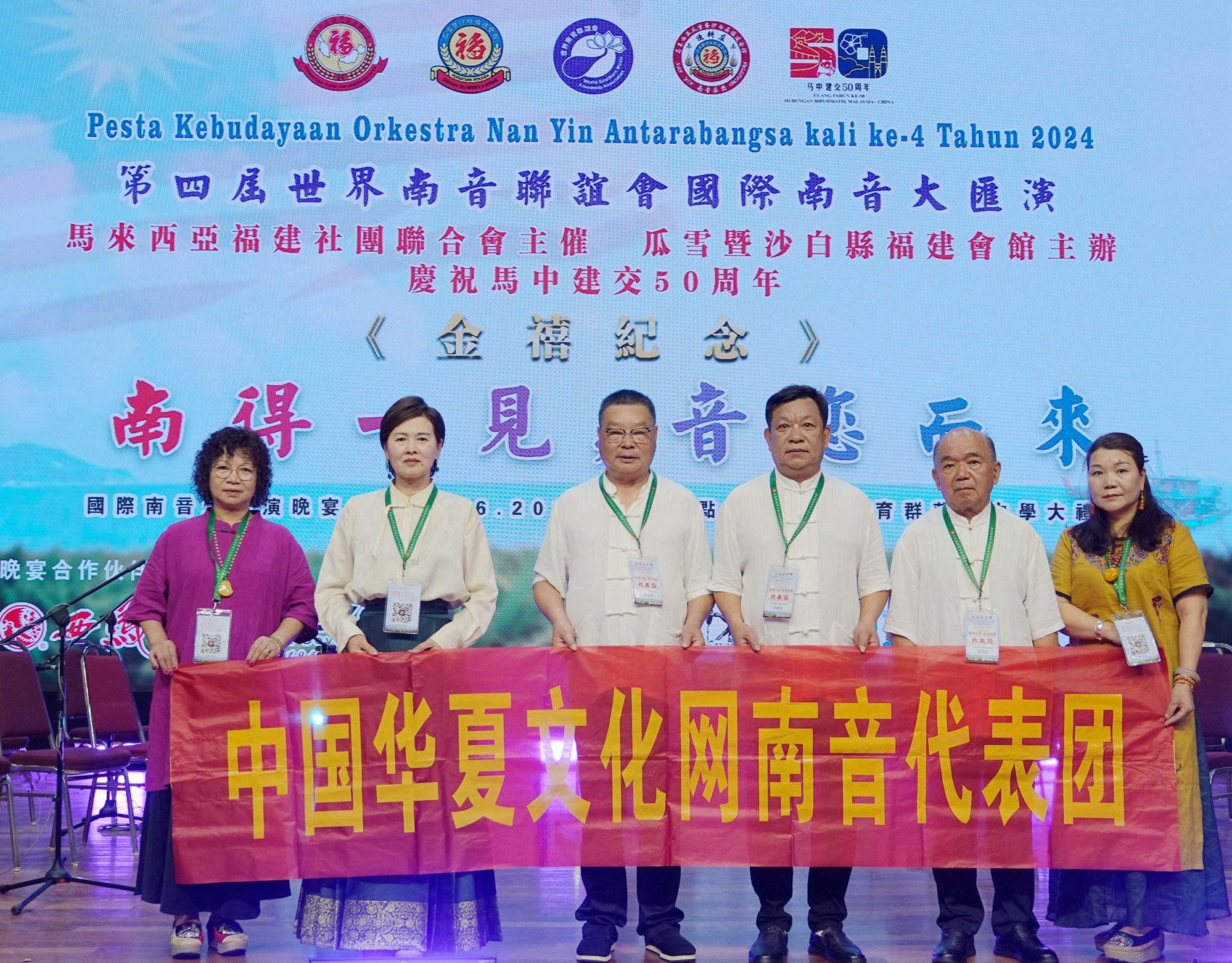 合影左起:中國華夏文化網副總編、馬來西亞中華傳統音樂文化節聯合組委會統籌兼藝術總監林素梅;馬來西亞福建社團聯合總會總會長、東盟福建社團聯合總會輪值主席、馬來西亞中華傳統音樂文化節聯合組委會總顧問丹斯里林福山;馬來西亞仙境集團董事經理、馬來西亞中華傳統音樂文化節聯合組委會副主席許國棟;中國華夏文化網總編輯、馬來西亞中華傳統音樂文化節聯合組委會主席、香港華夏文化藝術出版社社長兼總編輯陳家服▲