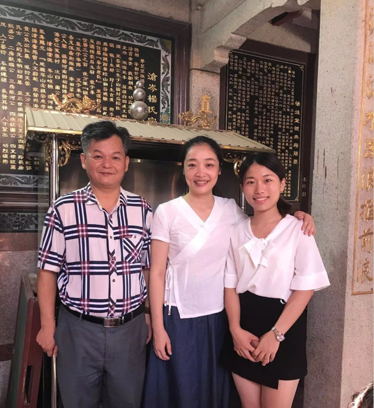 华夏文化网总编辑陈家服(左)、与福建师大音乐系教授陈俊玲(中)、华夏文化网总编助理、厦门大学外文学院,英语语言文学系MTI英语笔译方向研究生陈斯扬(右)在一起合影留念▲