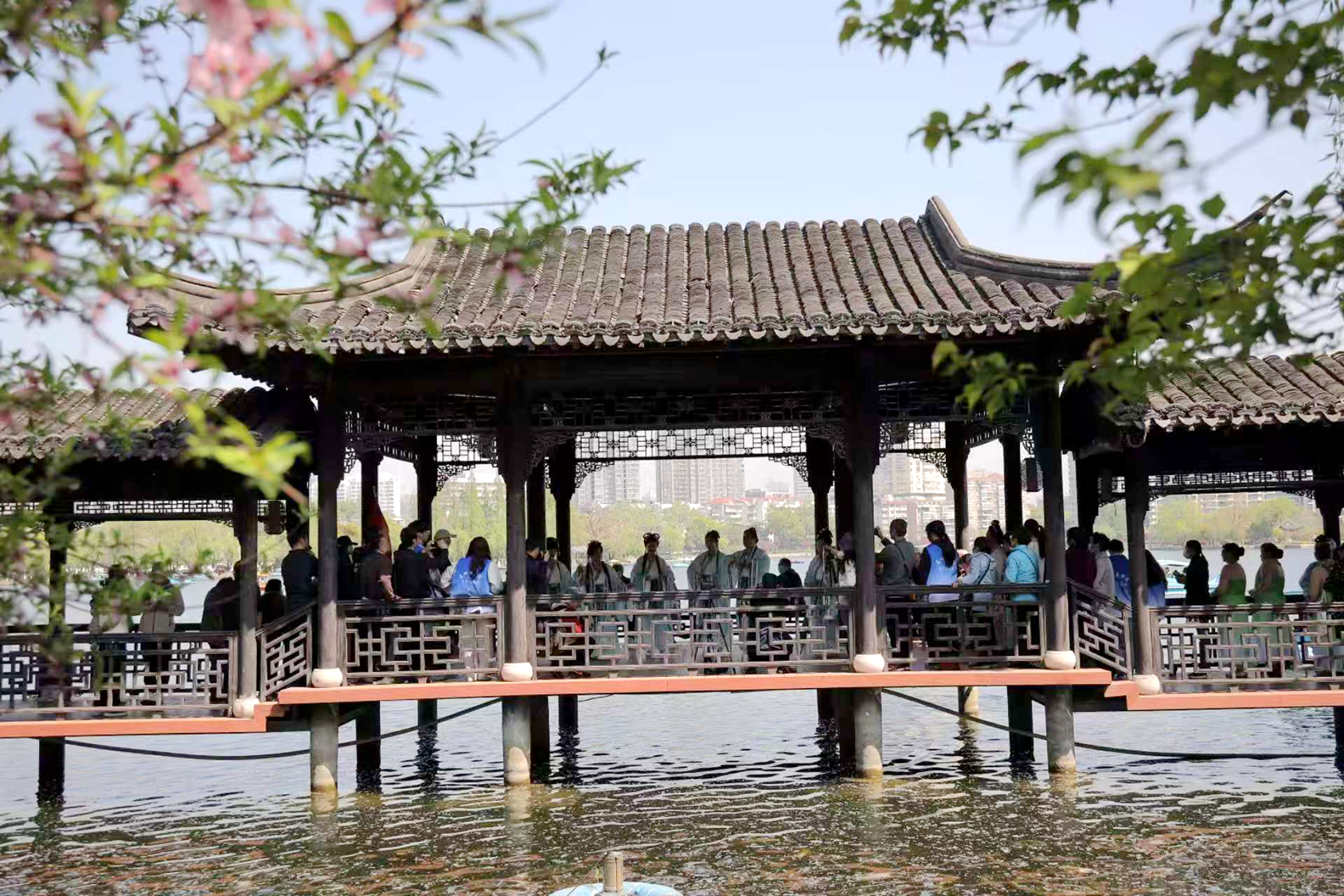 一曲轻快美妙的旋律结束,游客们还意犹未尽,紧接着,昆歌艺术团又给大家跳了一曲《春色莫愁湖》的舞蹈,游客们直呼“好!好!春色莫愁湖,确实美!”